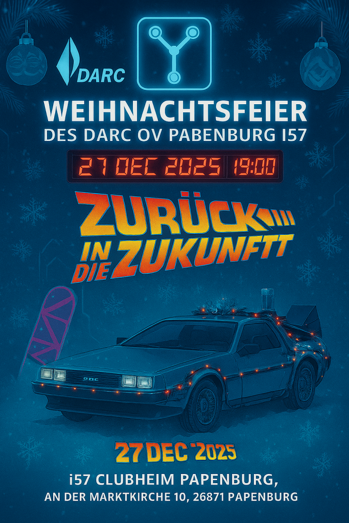 Am heutigen Samstag dem 20. Dezember 2025 trafen sich vier Mitglieder des DARC Ortsverbandes Papenburg i57 um das Clubheim auf Vordermann zu bringen. Zunächst musste die Außen angebrachte FD4 Drahtantenne wieder instandgesetzt werden. Diese war durch Tiefbau- und Baumfällarbeiten abgerissen. Durch den beherzten Einsatz von Leiter und Schnur durch Dominik DL2DL und Markus DF2MJ war diese aber nach wenigen Minuten wieder sende- und empfangsbereit. Das kann leider nicht für unsere EndFed gelten, über die das WSPR Signal unser Clubstation ausgesendet wurde. Diese ist irreparabel zerstört und muss ersetzt werden. Für WSPR wird jetzt übergangsweise die FD4 genutzt. Große Erleichterung äußerte unser Ortsverbandsvorsitzende Jürgen DL1LOL über den Abschluss der Tiefbauarbeiten sodass die volle Anzahl der Parkplätze wieder zur Verfügung steht. Kai DH0SK und Hans DB8WF sorgten für eine Weihnachtliche Dekoration und bereiteten im Anschluss noch das i57 Weihnachtsprojekt vor. So kann es am 27. Dezember losgehen…