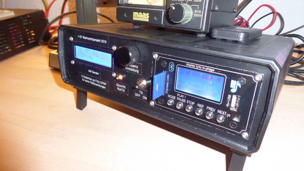 - der i57 Mittelwellensender: lange Jahre haben wir die Sendung ´Jetzt funkts´ auf der EMS-VECHTE Welle (Bürgerfunk) redaktionell erarbeitet und auf der Ems-Vechte Welle gesendet. Maßgeblich daran waren DF6IF, Fritz und DB8WF, Hans beteiligt. Nachdem Tod von Fritz, DF6IF kam der Gedanke im Rahmen des Weihnachtsprojektes diese Sendungen (Speziell die Weihnachtssendung) auf Mittelwelle auf 1657kHz in AM abzustrahlen. Zu jedem Weihnachtsfest bzw. zu jeder Weihnachtsfeier sollte dies geschehen. Es wurde somit ein DDS AM Mittelwellensender gebaut der auf Basis einer SD Karte MP3 Dateien der legendären Sendungen abstrahlt. Der Sender wird noch heute immer zum Weihnachtsfest bzw. am dritten Weihnachtstag in Betrieb genommen.